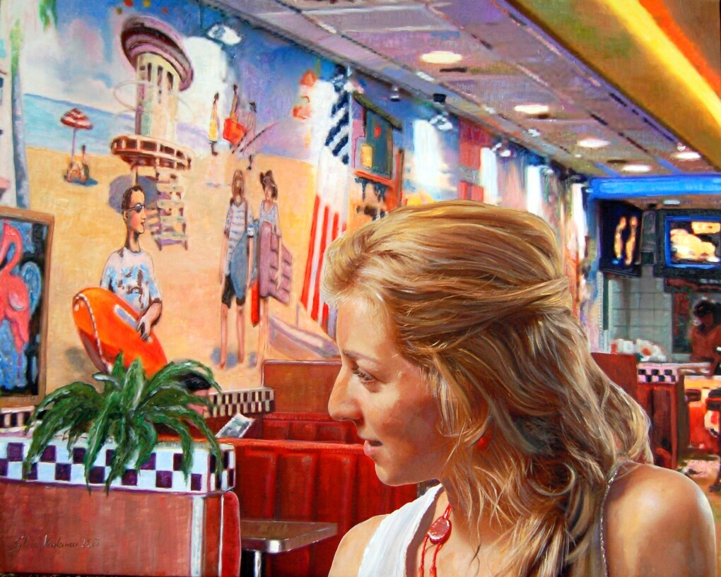 Sylvia Vandermeer, Siesta, Ei Tempera und Öl auf Leinwand, 140 x 140 cm